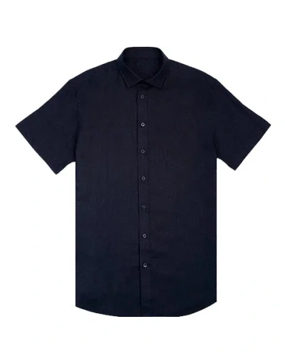 EIGHT X Men's Blue 100% Linen Button Short Sleeve Button Down Shirt - Navy