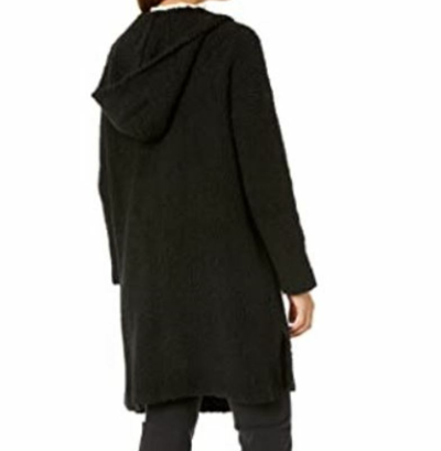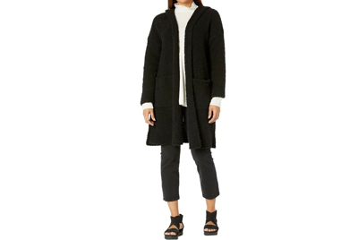 NWT ~Eileen Fisher Hooded Long Cardigan Coat Boucle Wool Blend Black Size S/ M You're weekend ready in the warm and cozy Eileen Fisher Hooded Long Cardigan with a boxy silhouette and a plush, dense, and surprisingly light wool knit. The longer length provides added warmth to this modern cardigan. Boucle Italian Yarn Straight Open Front Cardigan Boucle fabrication Boxy silhouette. Hooded stand collar. Open front. Long drop shoulder sleeves. Front patch pockets. Straight hemline with side slits. 57% wool, 24% recycled nylon, 19% nylon. Hand wash, dry flat. Imported. Measurements: Length: 38 in Made in Romania Armpit to armpit is appx 25" The security plastic pin in yellow, red, or blue color will be attached to the item and no return will be accepted if it has been removed.