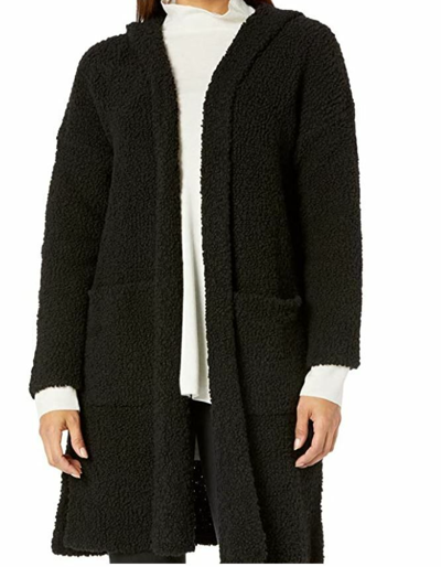 Pre-owned Hooded Long Cardigan Coat Boucle Wool Blend Black Size S/ M