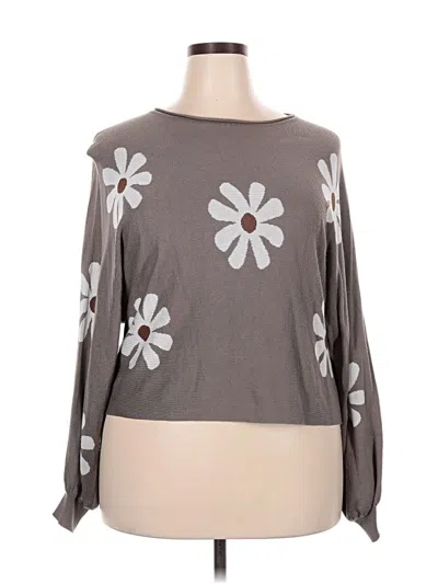Ekouaer Pullover Sweater, Size: 2X-Large. Item Details: Gray, Floral Pattern, Scoop Neck, Long Sleeve, Women's Tops
