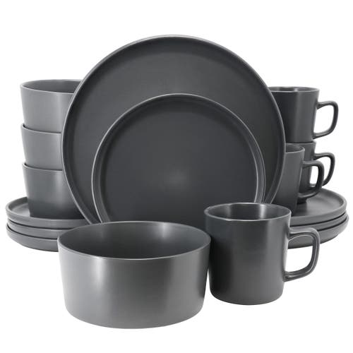 ELAMA Luxmatte Dark Grey 16 Piece Dinnerware Set In Gray