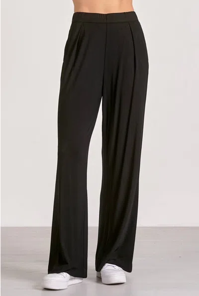 The perfect pant for running around town and looking cool while doing it.Experience effortless elegance with the Jolie Pull-on Pant by ELAN, crafted from a luxurious Viscose Blend for a standout minimalist look in classic black. Designed with a wide-leg, regular fit, these pants offer a mid-rise waist, making them an adaptable choice for both work and casual outings. Composition - 95% Viscose, 5% Elastane. Closure - Easy pull-on design. Model is 5'10" with measurements 32" bust, 24" waist, 32" hips, and is wearing a size small.