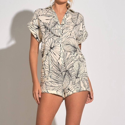 It doesn't take much for this one piece to look effortlessly cool. Add some statement jewelry to dress it up, or throw on some sneakers for a more casual vibe.Flaunting a striking natural and black tropics print. Crafted from 100% cotton. Offers unrivaled comfort and breathability. Loose bodice, short sleeves, and button-down front. Effortlessly stylish and easy-to-wear ensemble. Two large front pockets provide a practical touch. Embody laid-back, chic style.