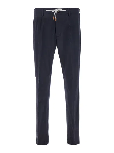 ELEVENTY Men Blue Pants With Drawstring Elastic Waist And Logo Patch On The Rear In Wool Stretch Man
