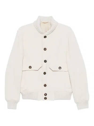Contemporary bomber jacket by Eleventy, crafted from a luxurious blend of wool, polyamide, and cashmere. The design features a sophisticated shawl collar, long sleeves, and a central button closure, complemented by front pockets and an elasticated hem for a refined yet comfortable fit. Ideal for effortless layering. Material - Wool, polyamide, cashmere Shawl collar Long sleeves Central button closure Front pockets Elasticated hem