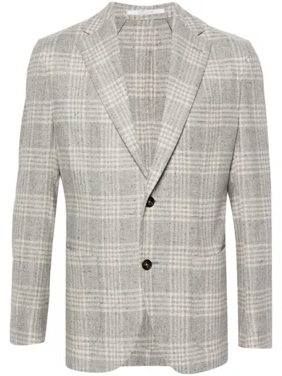 ELEVENTY Check-pattern Blazer In Grey