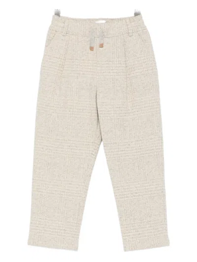 ELEVENTY Kids' Checked Pants In Neutral