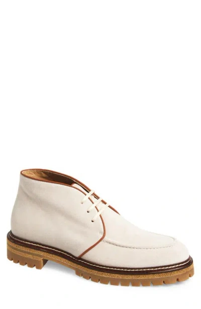 A toothy lug sole bring a rugged aesthetic to this Italian-made chukka-style boot featuring a velvety suede upper outlined with contrast piping. Lace-up style Leather upper and lining/rubber sole Made in Italy Designer Shoes