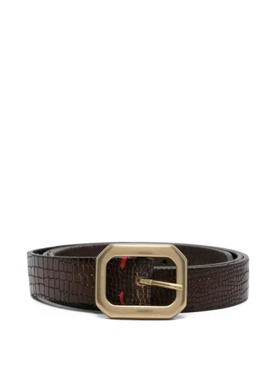 ELEVENTY Crocodile-embossed Rectangular-buckle Belt In Brown