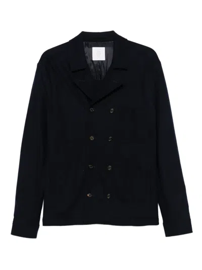 ELEVENTY Double-breasted Wool Jacket In Blue