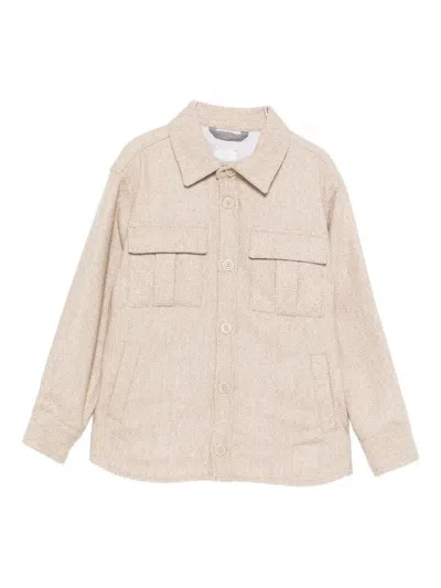 ELEVENTY Kids' Herringbone-pattern Shirt In Neutral