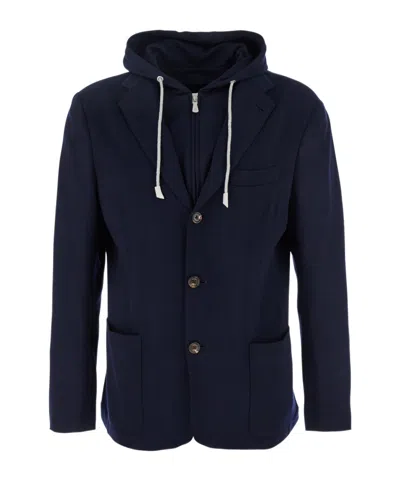 ELEVENTY Hooded Jacket With Front Pockets And Long Sleeves In Blue