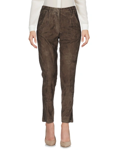 ELEVENTY Pants. leather, sueded, solid color, high waisted, regular fit, tapered leg, no appliqués, hook-and-bar, zip, multipockets, double dart, button closing hemline, contains non-textile parts of animal origin, pants. 100% Soft Leather