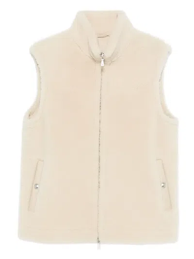 ELEVENTY Shearling Zip-front Gilet In Neutral