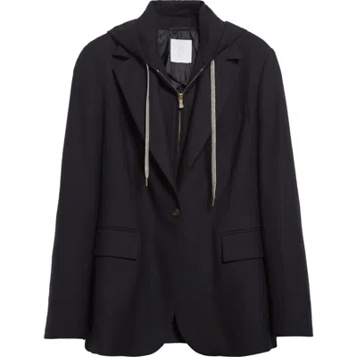Stretch Wool Blazer With Removable Hooded Bib In Black