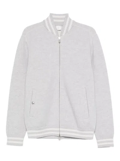 ELEVENTY Stripe-trim Wool Bomber Jacket In Gray