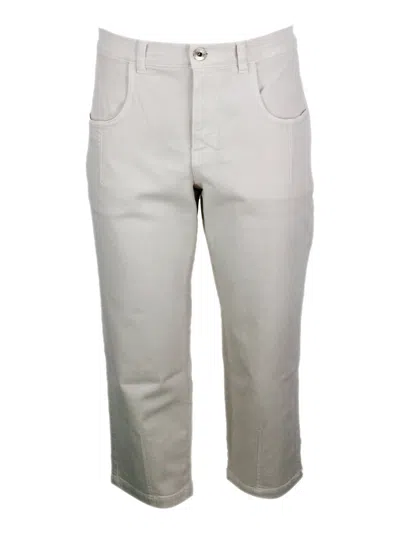 Colored denim trousers made of soft stretch cotton with a soft line and zip and button fastening