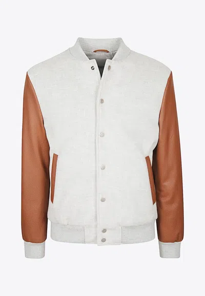 ELEVENTY Wool And Leather Bomber Jacket In Multi