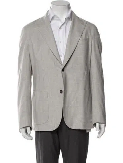 Eleventy Wool Blazer Grey Peaked Lapels & Double Vents Deconstructed Lining Two-Button Closure at Front Fit: Suiting by Eleventy typically fit true to size. | Eleventy Wool Blazer in Grey, Men's US40, FR50 | L