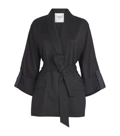 Meticulously tailored for a structured yet relaxed fit, this kimono-inspired jacket from Eleventy showcases the brand's premium craftsmanship in its fine wool-blend fabrication. The defining diagonal weave lends a subtle textural dimension, ensuring this belted piece stands as a refined layering essential for the new season.