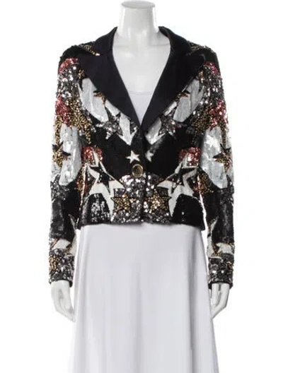 Elie Saab Sequin Evening Jacket Black & Metallic Patterned Beaded & Sequin Accents Pointed Collar Snap Closure Fit: Jackets by Elie Saab typically fit true to size. | Elie Saab Sequin Patterned Evening Jacket in Black/Metallic, Women's US8, FR40 | M