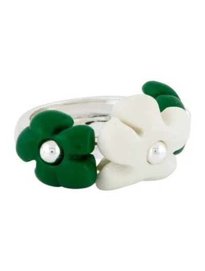 Silver-Tone Metal & Plastic | éliou Plastic Three-Flower Ring in Green/White, 5