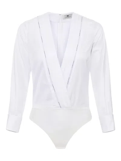 ELISABETTA FRANCHI Pleated-detail Long-sleeve Bodysuit In White