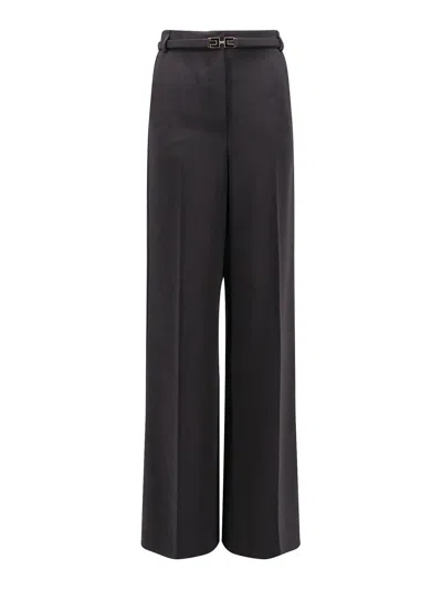 SKU: PA08751E2_110 - High waist with zip and metal hook lateral satin bands flared bottom leg made in italy 95% polyester 5% elastane. Colour. : Blacks and greys. Composition. : 95% poliestere 5% elastan. Country Of Manufacture. : IT. MPN. : PA08751E2110. .