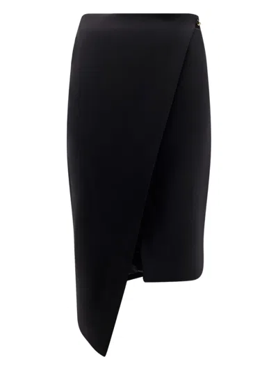 ELISABETTA FRANCHI Viscose And Wool Skirt With Asymmetrical Design In Black