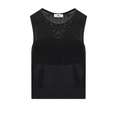 ELISABETTA FRANCHI Sleeveless Sheer Knit Crewneck Sweater In Black