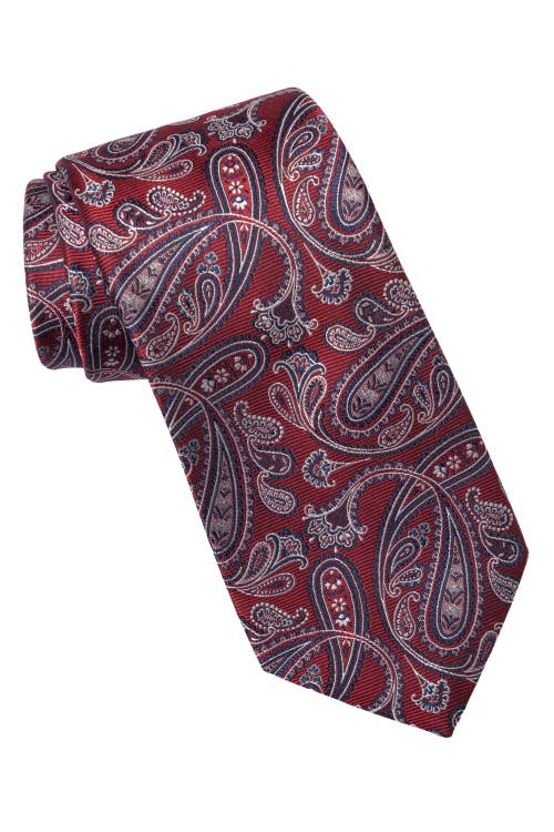Inspired by the rich history and timeless elegance of Sicily’s capital, our Palermo tie is a masterpiece of Italian craftsmanship. Woven in a refined paisley pattern, it features a sophisticated dark red base with subtle yet striking shades of blue—an homage to the shimmering Mediterranean and Palermo’s grand architecture. This tie is all about understated luxury. The intricate paisley weave adds depth and texture, making it a perfect choice for both formal occasions and refined everyday style. Made in Italy with the finest silk, Palermo is a classic with a modern edge—effortlessly elegant, just like the city it’s named after. Standard Length: Approx. 3.25" x 58.5". A classic tie width and length that is perfect for most men up to 6'2". 100% silk jacquard: It is made on a special jacquard loom, using different colored yarn-dyed threads to create the woven pattern. 3-fold construction: This ensures your tie maintains its shape and effortlessly creates a flawless knot for a truly distinguished look. It's the traditional method of making a luxury tie. Self-tipped: We tip our ties with the same fabric as the front. This not only adds refinement but also prevents unsightly curling at the point, and as you move, the backside looks fabulous, leaving a lasting impression. Pure wool inner lining: Wool breathes, which helps to give your tie its body and shape for many, many years.