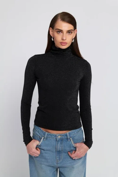 ELLE COLLECTION Knit Turtleneck Top Solid In Black