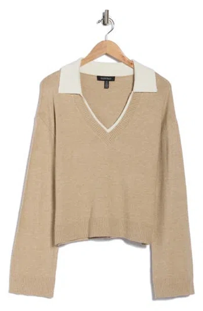 Featuring a layered double collar with a V-neck base topped by a Johnny collar, this relaxed-fit sweater offers a unique twist on a classic silhouette. 21 3/4" length Johnny collar Long sleeves 46% viscose, 30% nylon, 24% polyester Machine wash, dry flat Imported