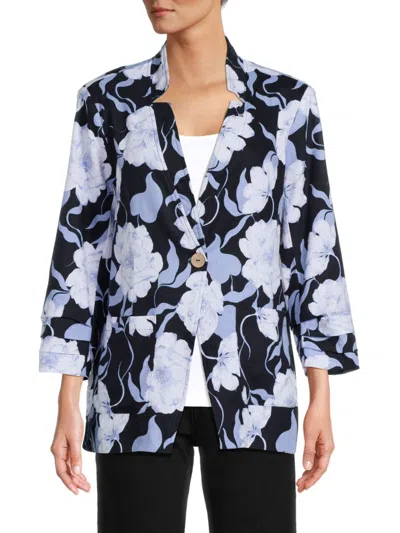 Introducing the Ellen Tracy Linen-Blend Blazer, a stylish and sophisticated addition to your wardrobe. This beautiful blazer features a blue floral print, shoulder pads, pintuck sleeves, and two front pockets for added charm. Made with a blend of 55% linen and 45% viscose, this blazer is both comfortable and fashionable. The open front design adds a modern touch, while the 100% polyester lining ensures a smooth fit. Whether you're dressing up for work or a special occasion, this Ellen Tracy blazer is the perfect choice. Machine washable and imported for your convenience. Kick your style up a notch with this must-have blazer.