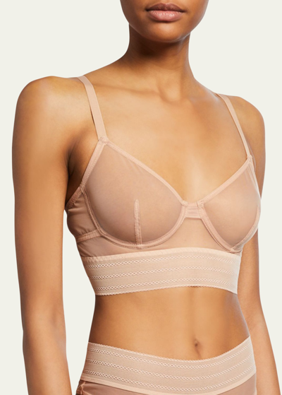 Else "Baklava" long-line bra in semisheer tulle. Plunging V neckline. 3/4-coverage cups with underwire. Adjustable shoulder straps. Back hook-eye closure. Scalloped hem. Nylon/spandex. Imported.