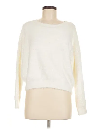 Em & Elle Pullover Sweater, Size: Medium. Item Details: Ivory, Boatneck, Long Sleeve, Frayed Edges, Women's Tops, Nylon/Polyester