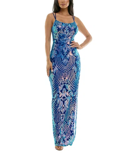 EMERALD SUNDAE Juniors' Sequined Side-slit Gown, Created For Macy's In Royal Aqua