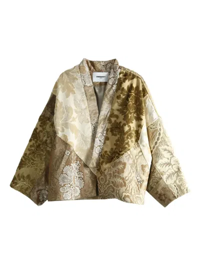 beige patchwork design open front