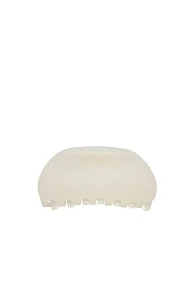 Emi Jay Half Moon Clip in Grey Smoke - White. Size all. Acetate claw clip. Made in China. Hinge claw closure. EIJF-WA135. D-02-HMC-266. About the designer: