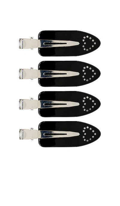 Emi Jay Popstar Clip Set in Black. Emi Jay Popstar Clip Set in Black. Custom biodegradable acetate with crystal accents. Imported. Designed to keep hair smooth and polished for all hair types. Set of 4. Measures approx 2.37 in length. EJAY-WA186. POPSTAR.