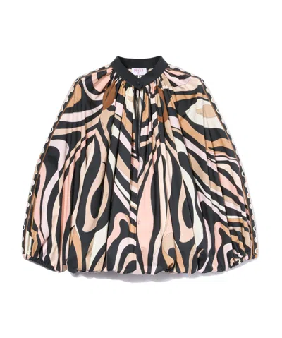 Pucci's High Neck Sweater epitomizes contemporary elegance with its gathered design and voluminous sleeves. The striking abstract pattern in shades of pink, black, and beige elevates this piece, making it suitable for both casual outings and relaxed at-home wear.- Brand: Pucci - Product Type: Sweater - Material: Premium blend fabric - Care: Dry clean only - Origin: Made in Italy