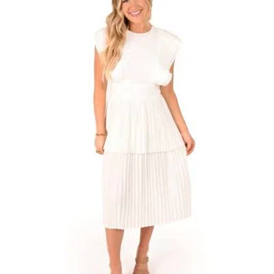 The perfect length dress does exist.The Chloe Dress just called and requested you take her out dancing all night. The accordion pleating makes this dress a unique stand out piece while getting spun around the dance floor. Perfect for a spring service, or a date night for an effortless day to night transition. Wherever you wear her, you're sure to be on the best dressed list. Accordion Pleating. Tiered Loose Fit Skirt. Fitted Bodice. True to Size. Dry Clean Only. Designed by Emily McCarthy Savannah, Georgia