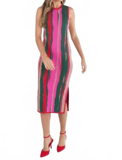 Just add slides or mules and you are good to go.Elevate your holiday wardrobe with the Simone Sweater Dress by Emily McCarthy, designed in a festive Tinsel color palette. This sleeveless sheath dress features a crewneck silhouette and is crafted from a viscose blend (61% Viscose, 39% Polyester) for luxurious comfort. Designed with a pull-on style, this midi-length piece makes an effortless statement at any Valentine's Day party or festive occasion. Care for this patterned dress by hand washing with gentle detergent in cold water and line drying to preserve its vibrant shades.