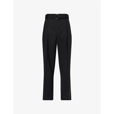 Mens Belted Wide-leg Wool Blend Trousers In Black