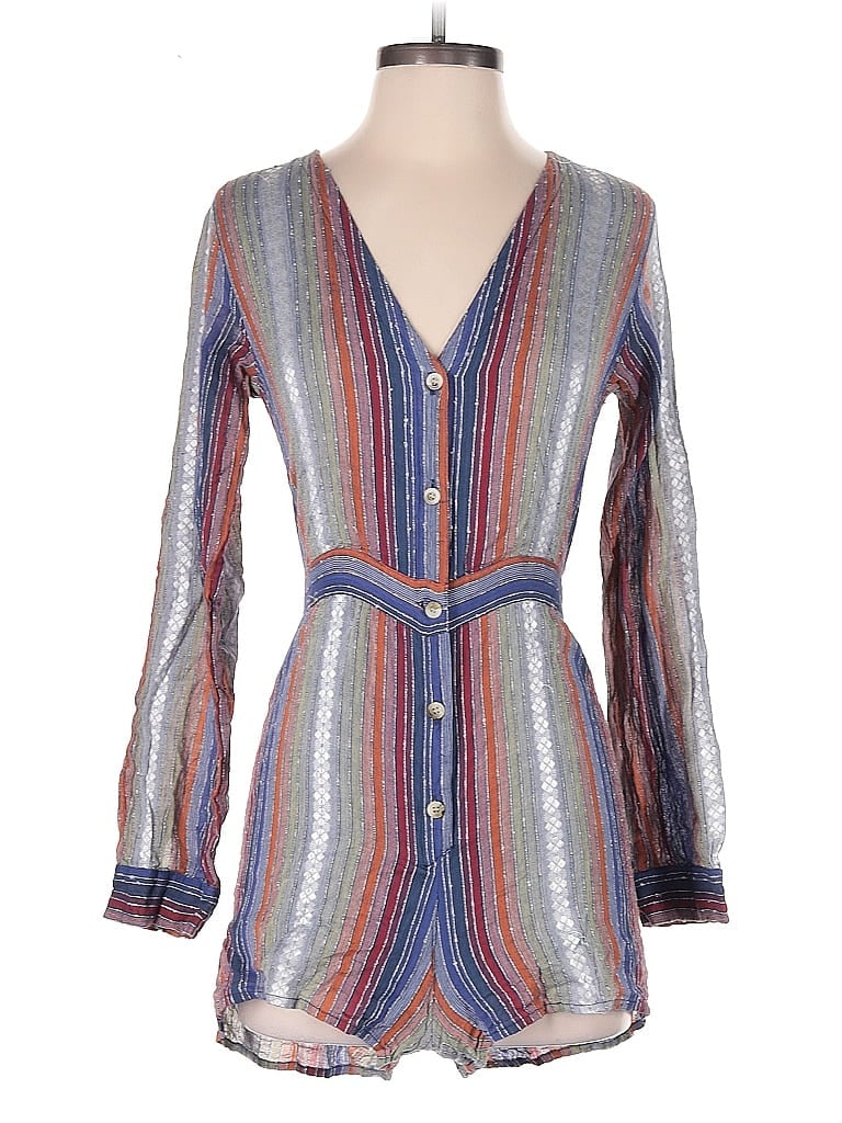 En Creme Romper, Size: Small. Item Details: Blue, Tweed Pattern, V Neck, Skinny Leg, Long Sleeve, Women's Dresses, 100% Rayon