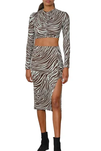 ENDLESS BLU. Open-back Top And Midi Skirt Set In Seafoam/brown In Multi