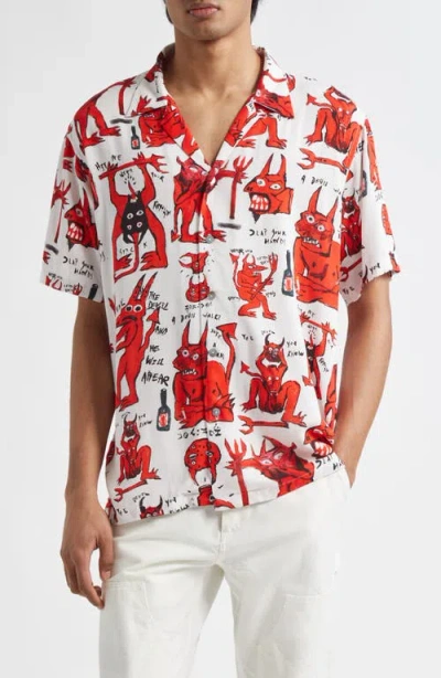 ENDLESS JOY Devil Print Lenzing™ Ecovero™ Viscose Button-up Shirt In White