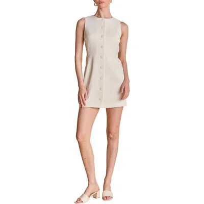 Oversized covered buttons at the front further the polished appeal of this sleeveless minidress cast in a chic off-white colorway. Front button closure Jewel neck Sleeveless Lined 100% polyester Hand wash, dry flat Imported