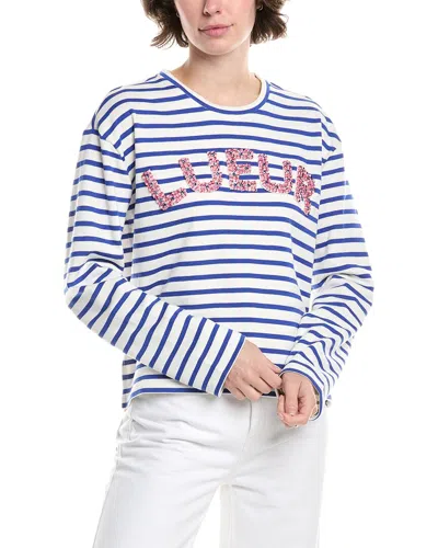 Introducing the Endless Rose Embellished Sweatshirt, a stylish addition to your wardrobe. This white and blue sweatshirt features ribbed trim and sequin accents for a touch of glamour. The slip-on styling makes it easy to wear, while the 65% cotton and 35% polyester blend ensures comfort. Approximately 22 inches from shoulder to hem, this sweatshirt is perfect for any casual outing. Hand wash recommended. Imported. Model is 5'9 and is wearing a size small. Measurements may vary slightly by size. Elevate your look with the Endless Rose Embellished Sweatshirt today!