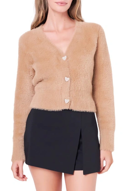 ENGLISH FACTORY Pearly Heart Button Sweater In Camel